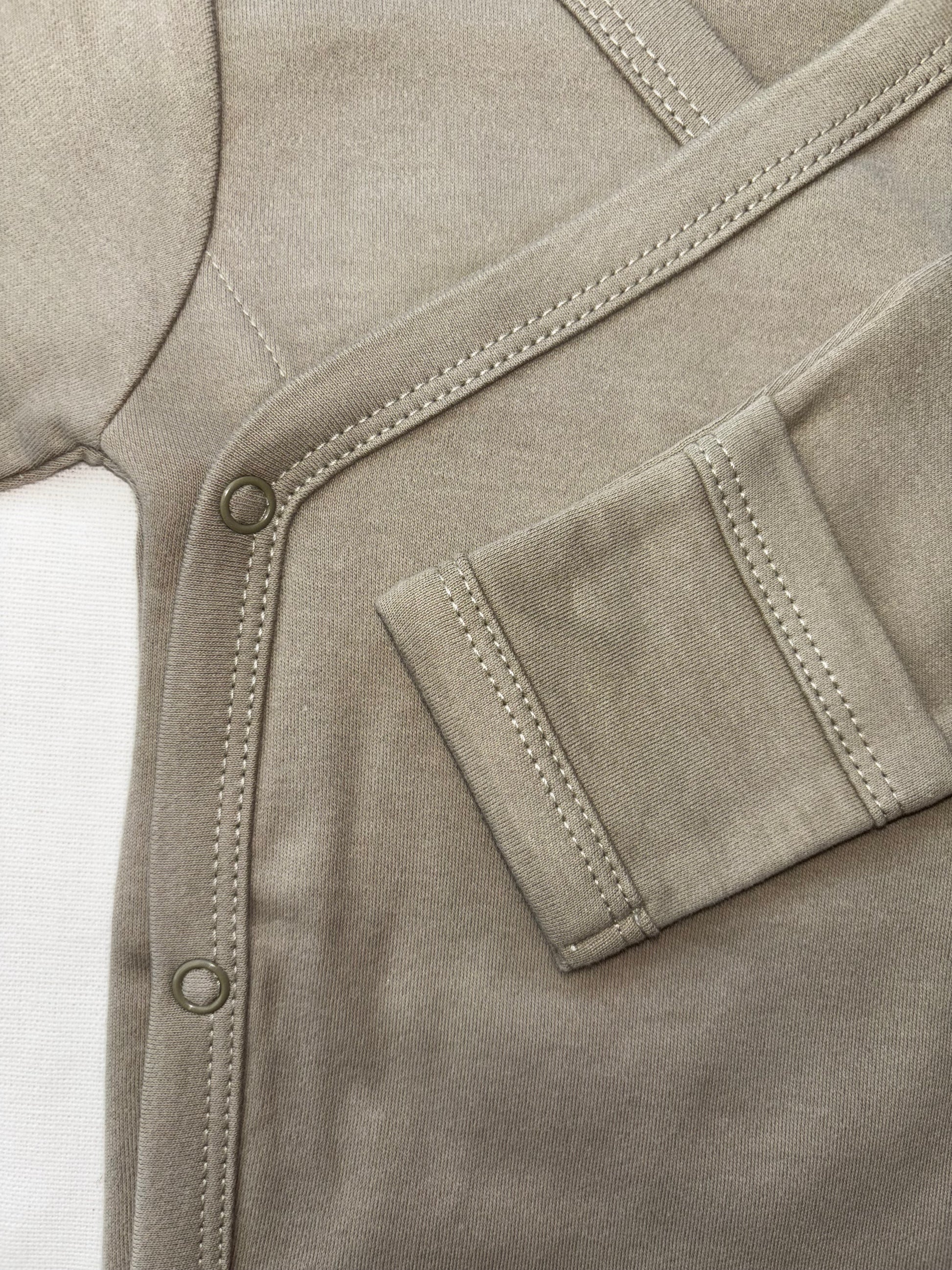 The Fern Wrap in sage is made from 100% organic cotton, ensuring a gentle, breathable fabric perfect for delicate skin. Its personalised design offers a custom touch, combining comfort with individuality.