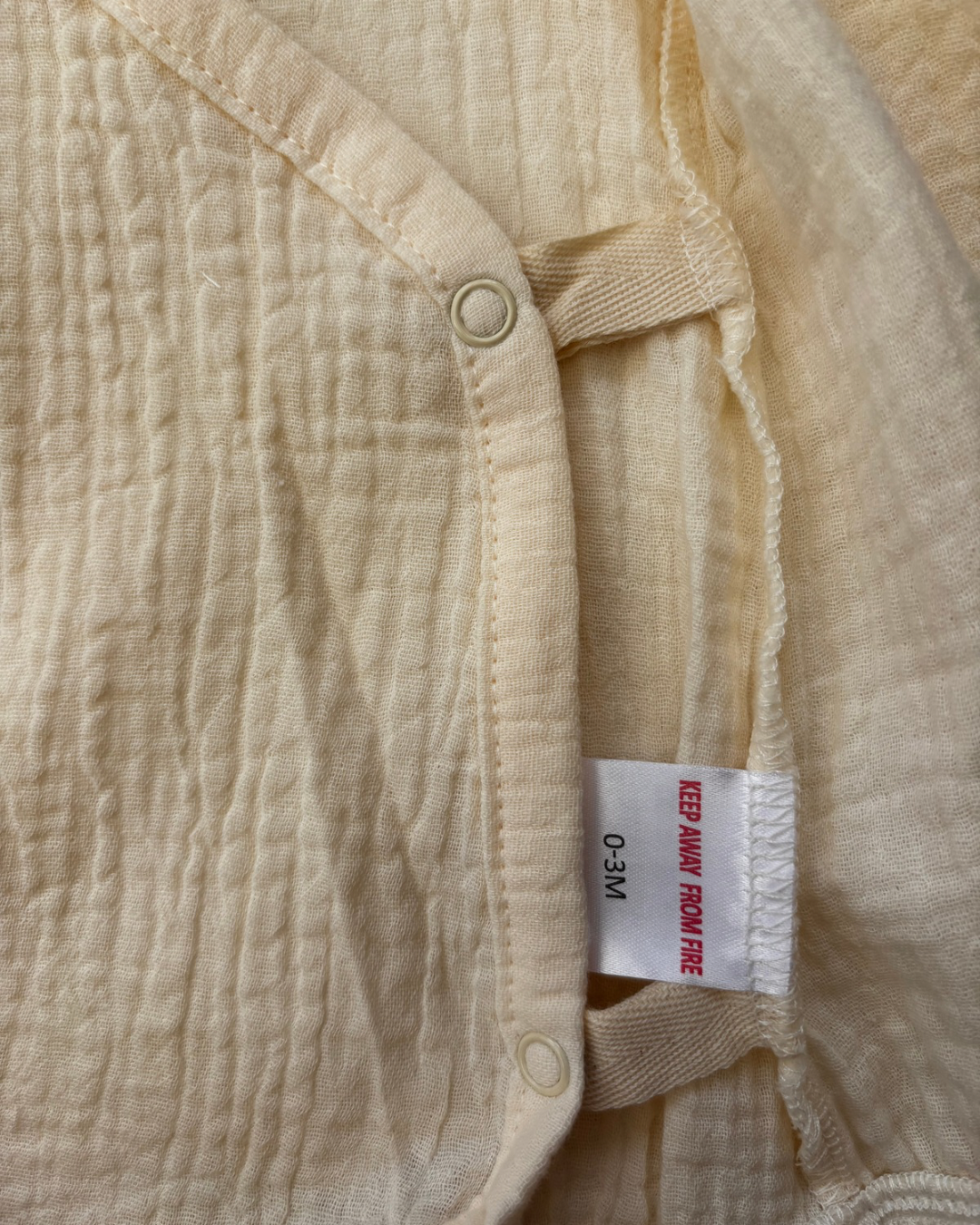 The Meadow Wrap in oatmeal is made from 100% organic cotton, ensuring a gentle, breathable fabric perfect for delicate skin. Its personalised design offers a custom touch, combining comfort with individuality.